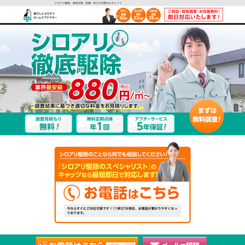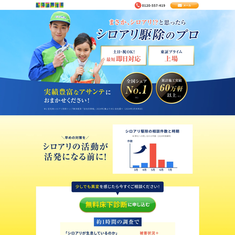 床下に潜むシロアリを巣ごとしっかり駆除!お問い合わせ実績は年間2万件以上と豊富